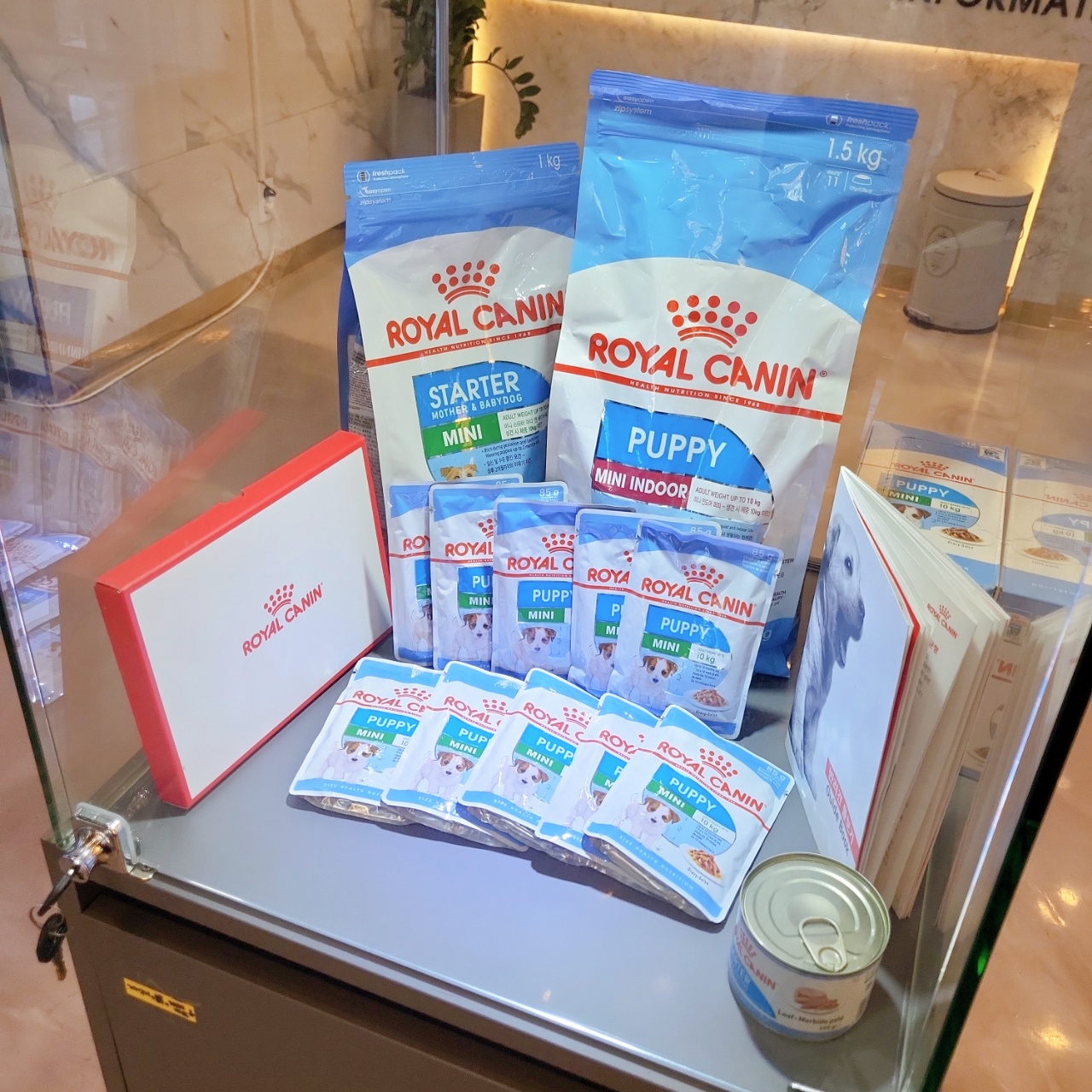 원래 퍼피를 데려올 때 먹고 있던 사료를 주어야 하고, 물에 불려서(스트레스로 인한 소화불량 예방) 먹여야 하는데 아가들이 먹는 게 로열캐닌 이었다.